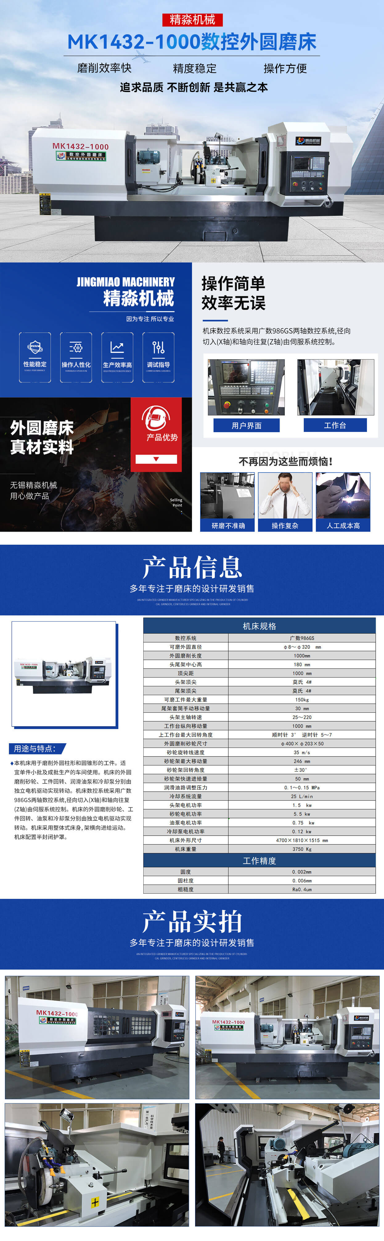 歡迎您訪問無錫市精淼機械科技有限公司官網!本公司主要產品有:磨床,外圓磨床,萬能外圓磨床,數控外圓磨床,數控端面外圓磨床,數控復合磨床,專機定制,高精度外圓磨床 !